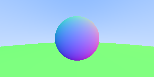 This method is largely symmetric with the version we used in Chapter 4, returning the normal-vector-as-a-color if a hit is detected, and otherwise returning the blue background gradient from Chapter 3.